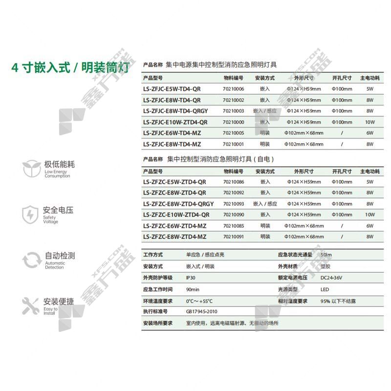 雷士照明 自电集控 应急筒灯 LS-ZFZC-E10W-ZTD4-QR 90min