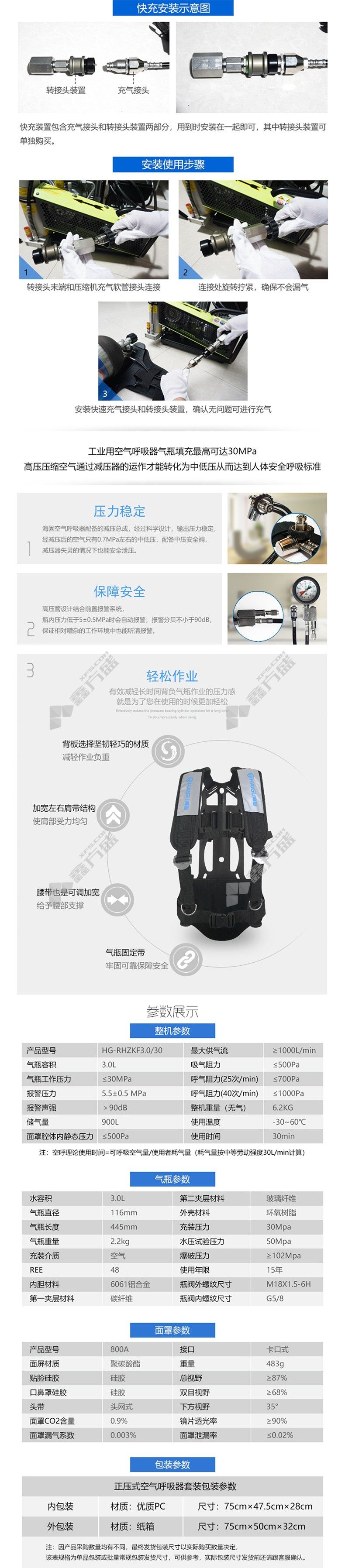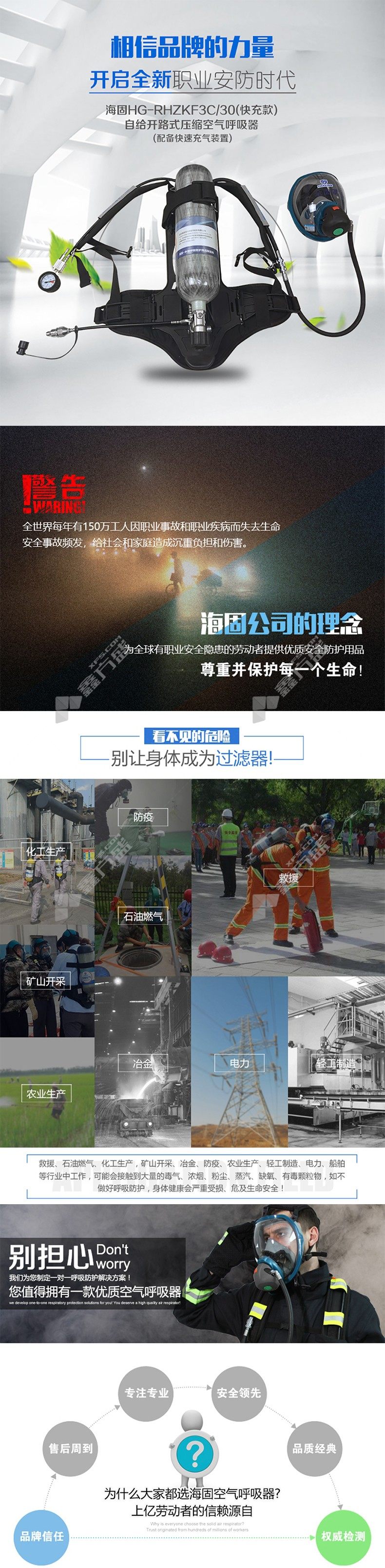 商品名称: 海固 GB工业-C快充套装自给开路式压缩空气呼吸器 HG-RHZKF6.8/30/6.8L-快充款