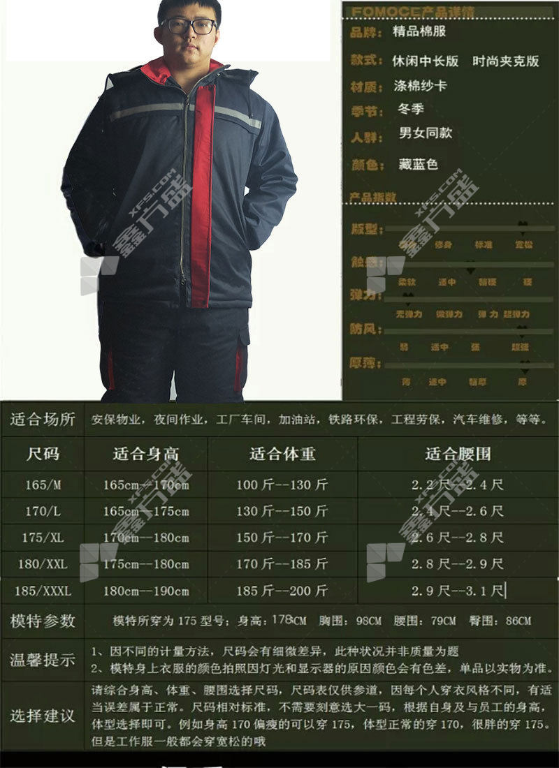商品名称: 沸耐笙 藏蓝色冬季加厚保暖防寒服上衣 XL 藏蓝色 FNS-00847