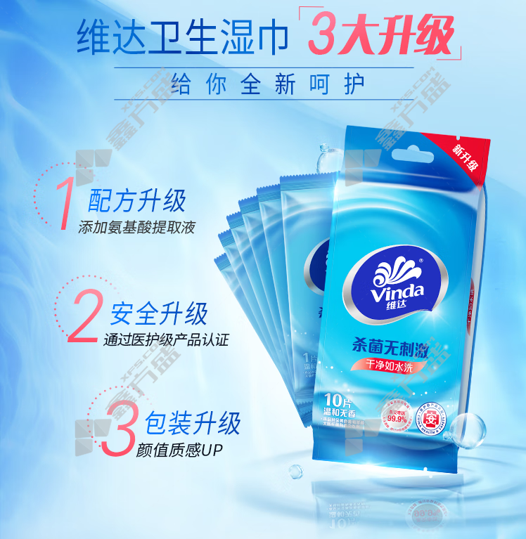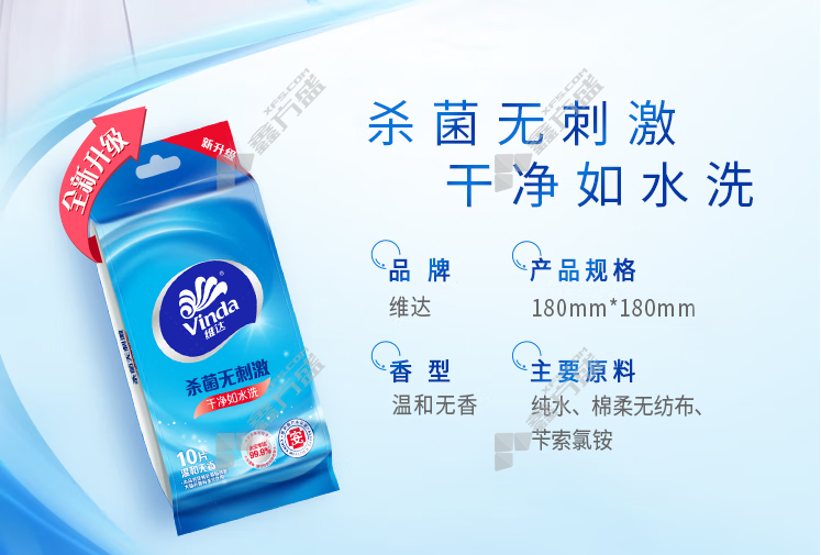 商品名称: 维达 VW1009 消毒便携式湿巾 10抽/包 60包/箱 180*180mm