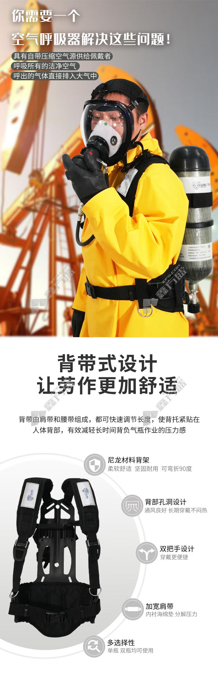 自给式空气呼吸器材质:面罩材质:硅胶 气瓶材质:碳纤维复合气瓶