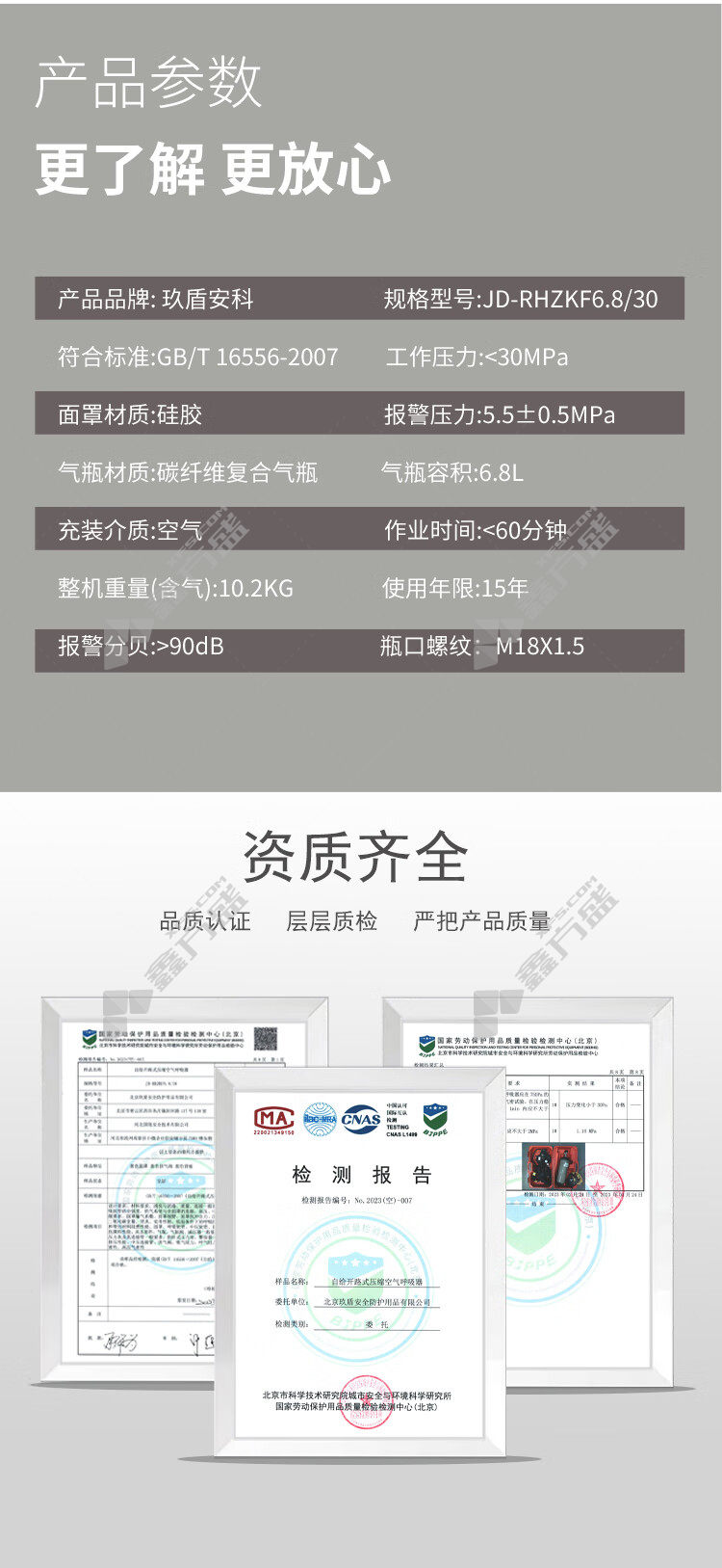 商品名称: 玖盾安科 JD-RHZKF6.8L/30 开路式空气呼吸器 JD-RHZKF6.8/30(HUD)