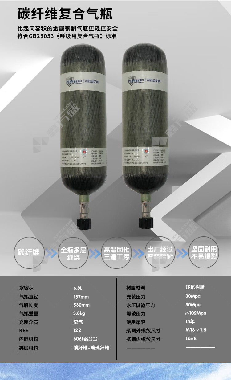 自给式空气呼吸器气瓶容量:6.8L
