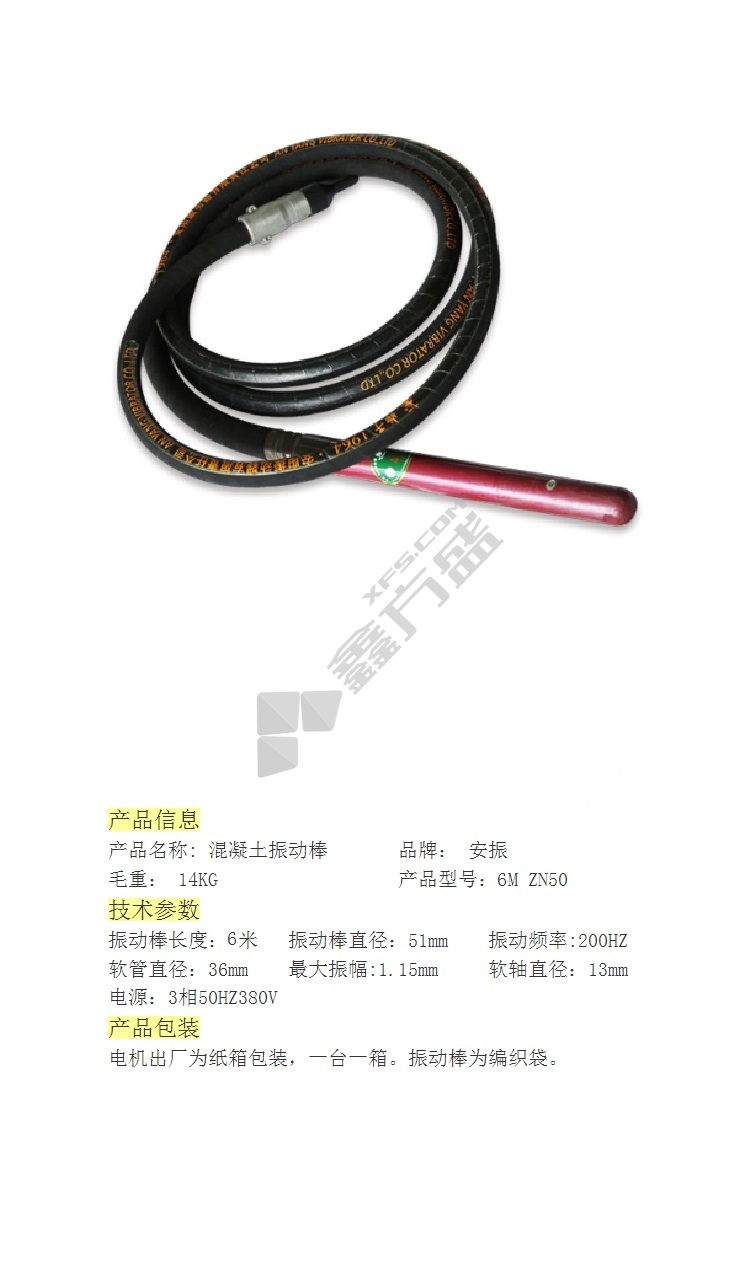 商品名称: 安振 内置混凝土振动器振动棒. ZNF50 ZN50 6m.