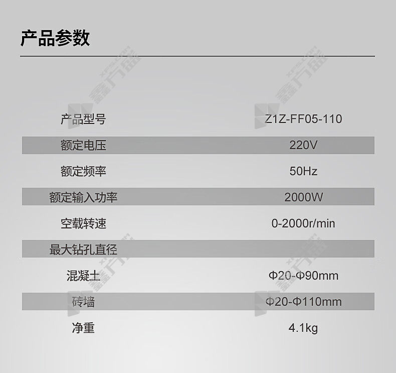 商品规格:Z1Z-FF05-110 :01301170215/2000W/110mm