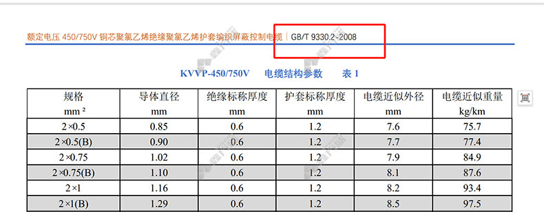 控制屏蔽电缆(KVVP)护套材质:聚氯乙烯