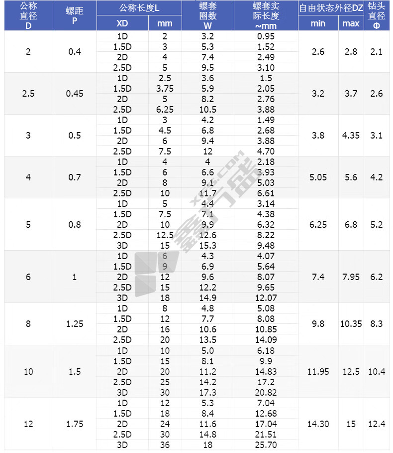 商品规格:东明 DIN8140钢丝螺套,M12-1.75X2D,不锈钢304,150个/盒
