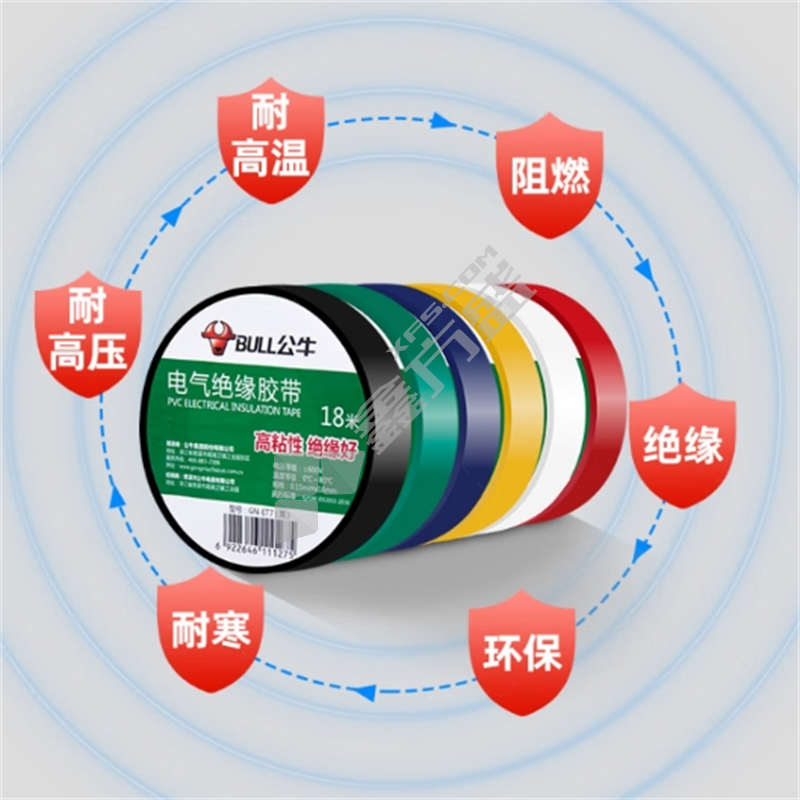 商品名称: 公牛 电工绝缘胶带 PVC/18m*18mm*0.15mm/红色
