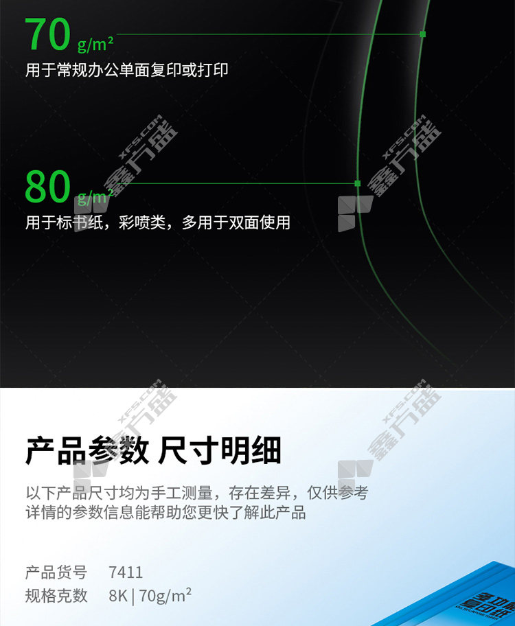 商品名称: 得力 7410 8K复印纸 70g 8K 白色 500张