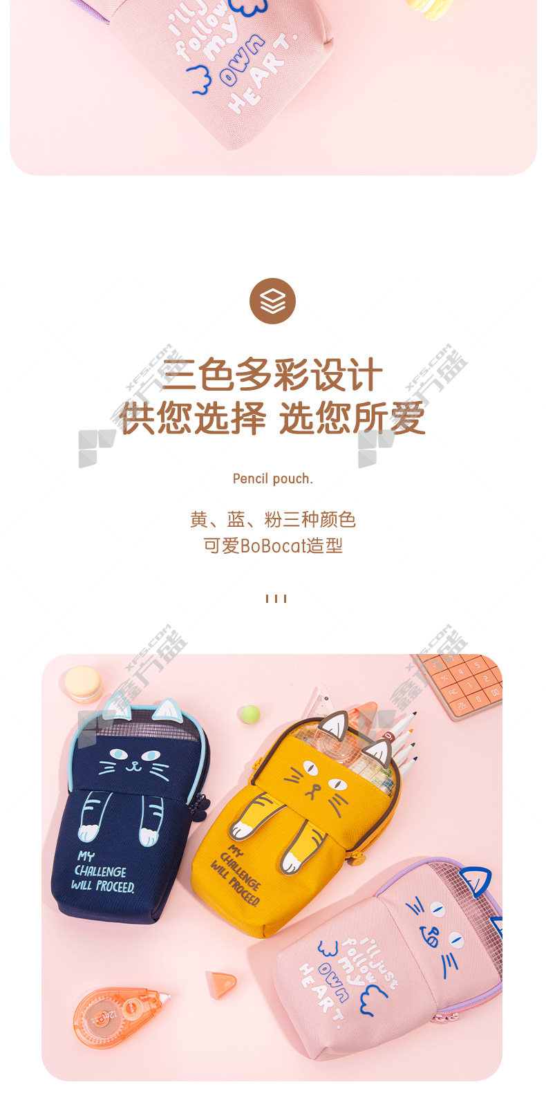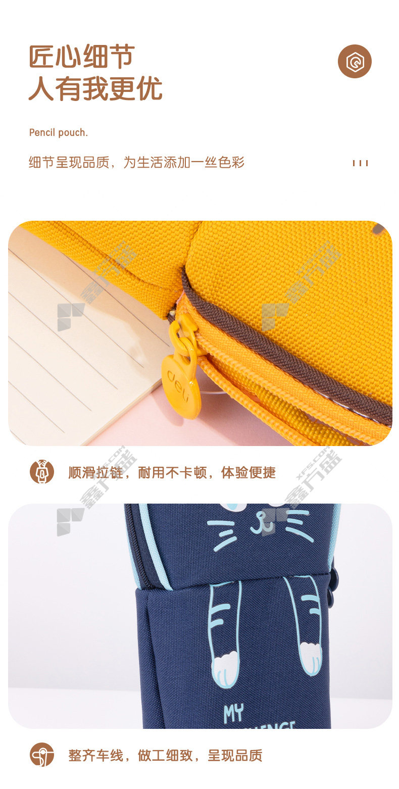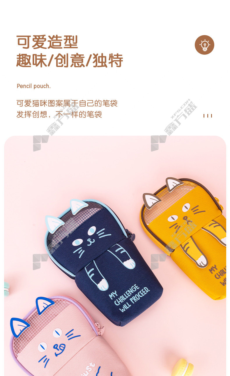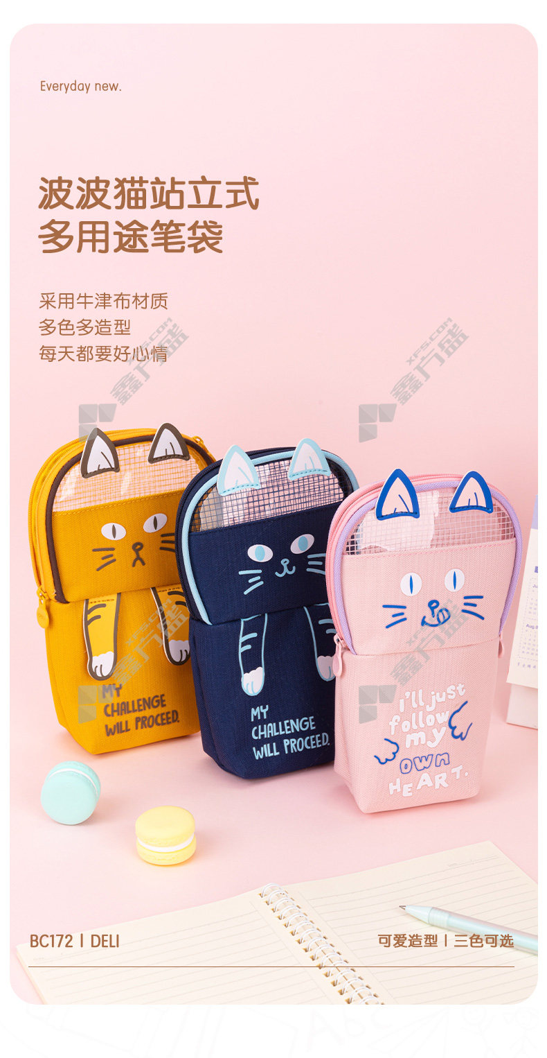 商品名称: 得力 波波猫站立式多用途笔袋 混色 BC172