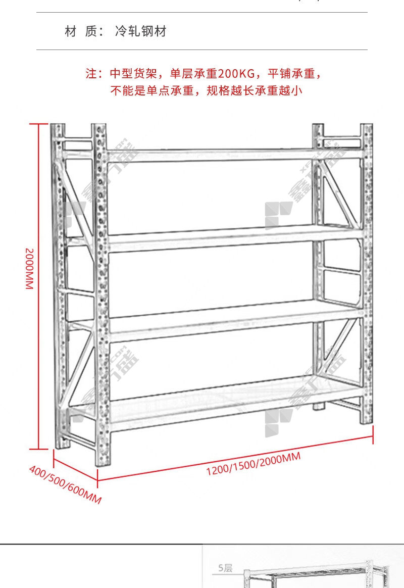 包装清单:仓储货架*1组