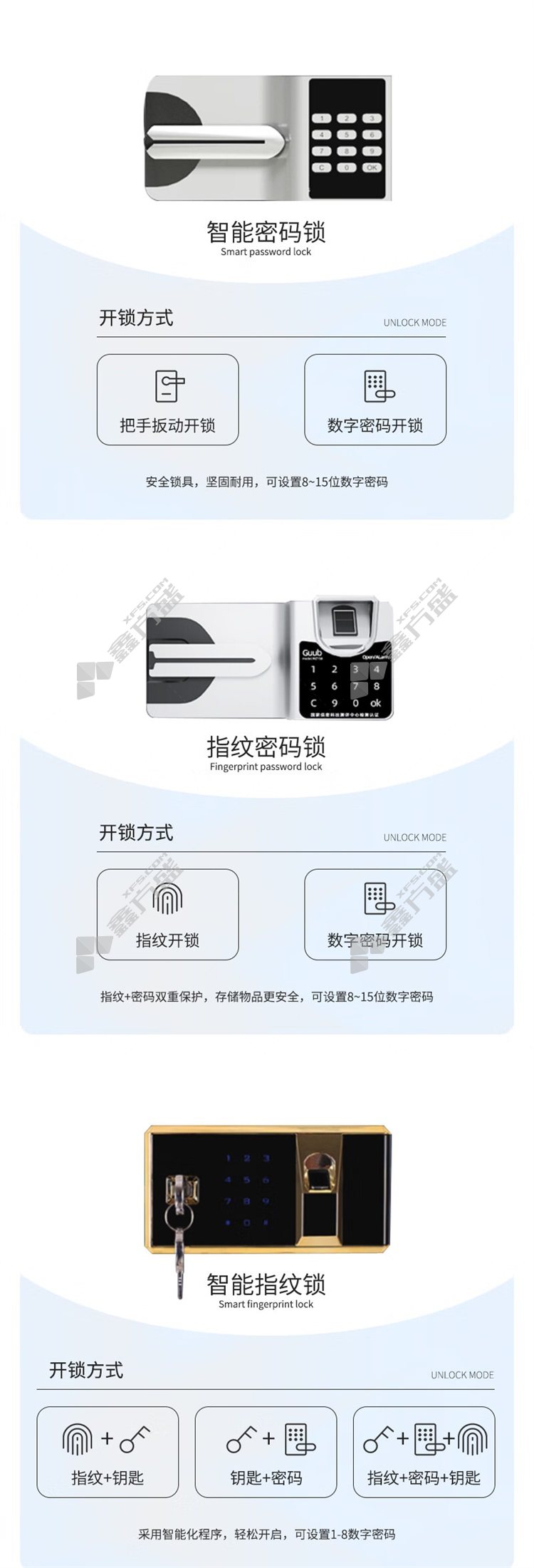 电子密码保险箱开锁方式:指纹开锁、数字密码开锁