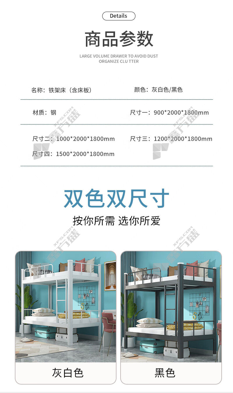 白色螺丝式普通床板上下床 200cm*90cm*178cm*1.3mm 40方管