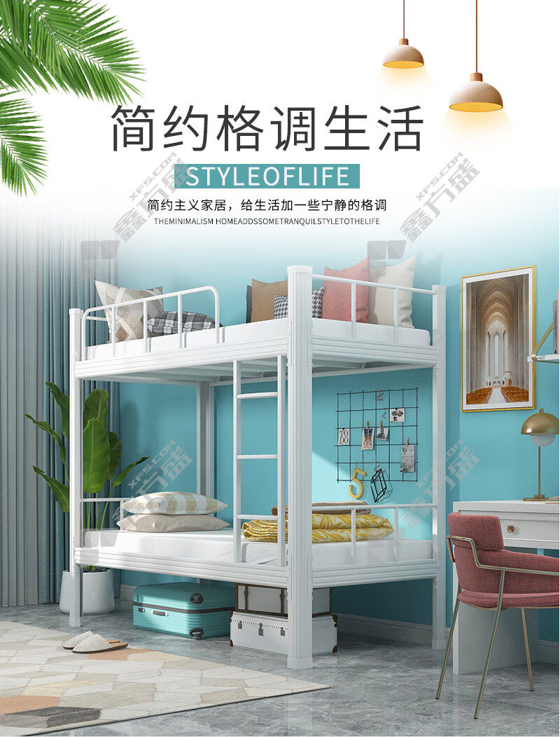 臻远 钢制型材床双层床铁艺高低床双层床 W2000*D900*H1800mm 白色 XCC-10
