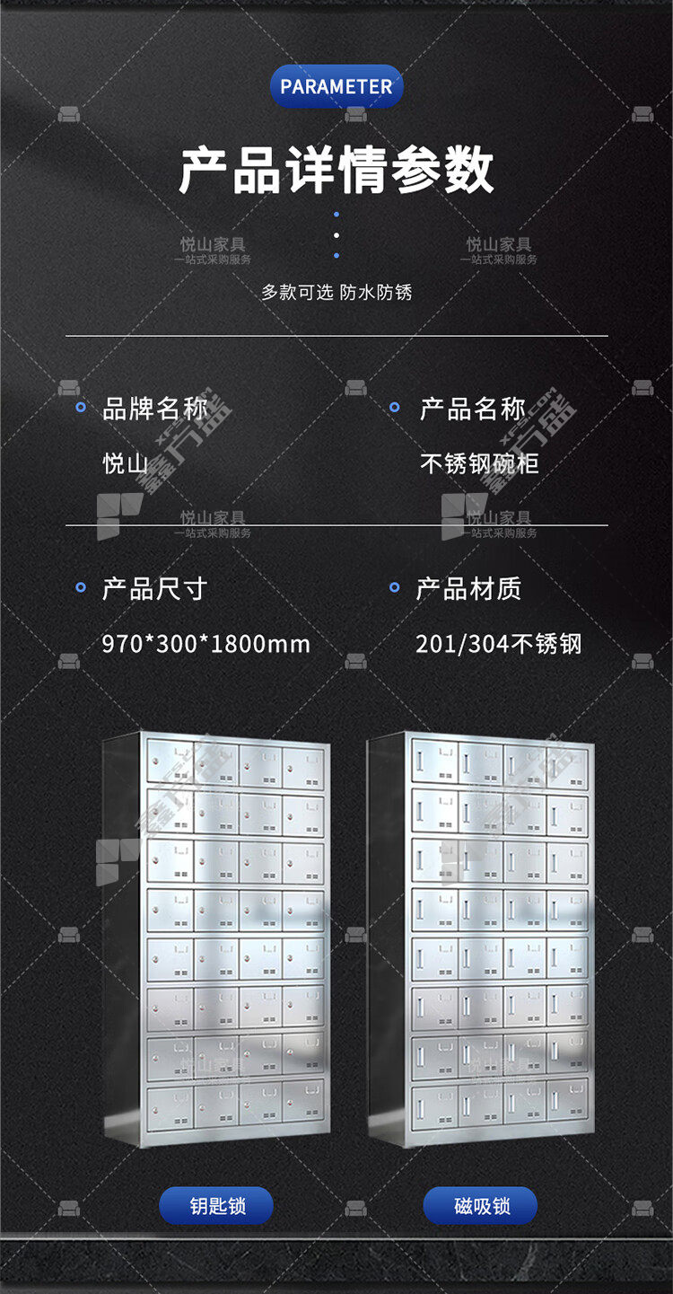 悦山 YSOA11FO32MW304Y钥匙锁32门餐具碗柜 YSOA11FO32MW304Y 97*30*180cm 银色
