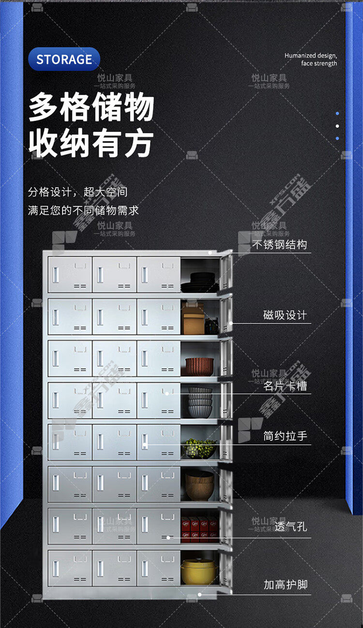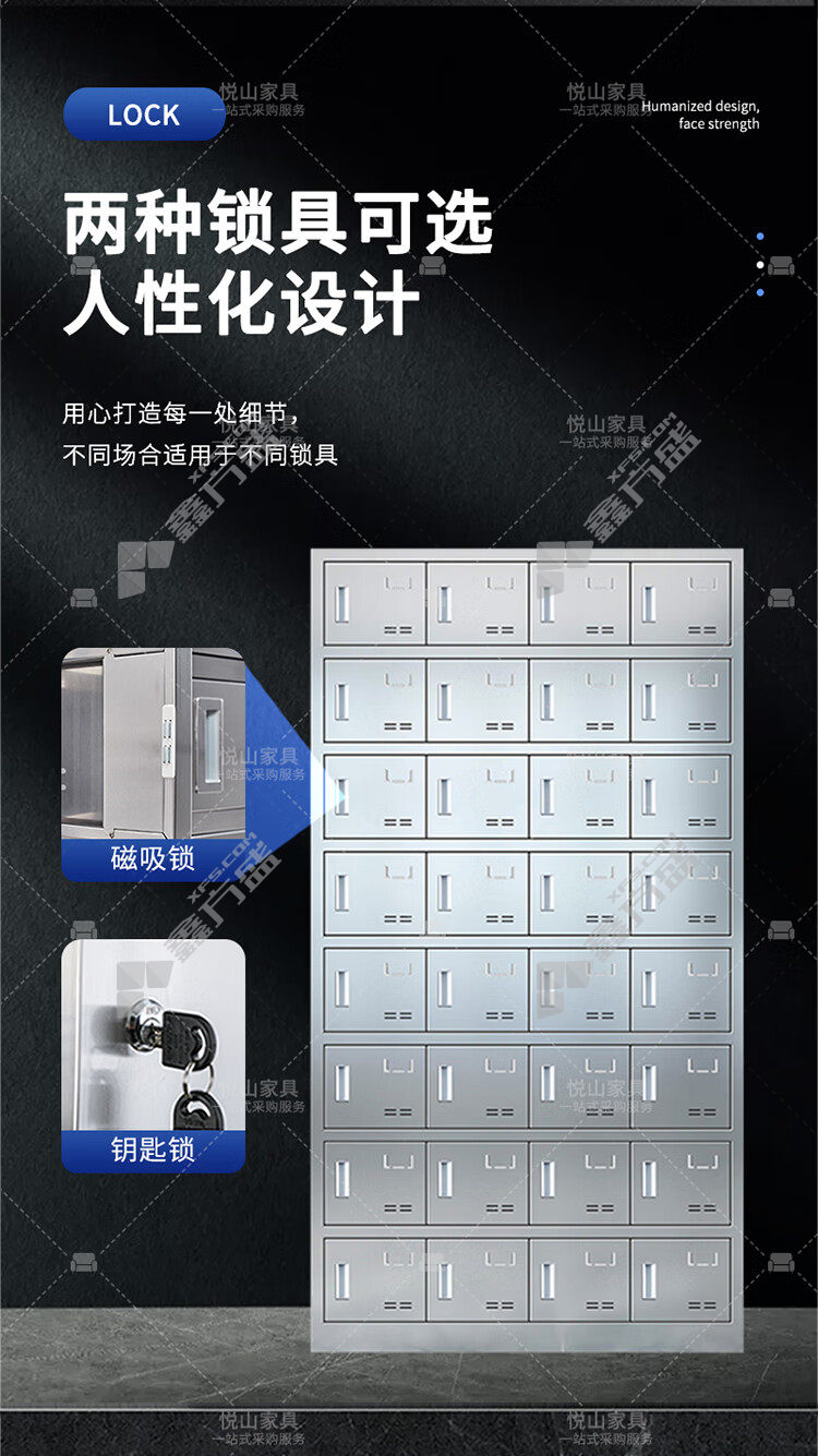 • 悦山 YSOA11FO32MW304Y钥匙锁32门餐具碗柜 YSOA11FO32MW304Y 97*30*180cm 银色