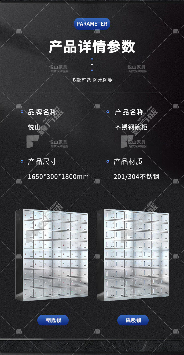商品名称: 悦山 YSOA11FO63MW304C磁吸锁63门餐具碗柜 YSOA11FO63MW304C 165*30*180cm 银色