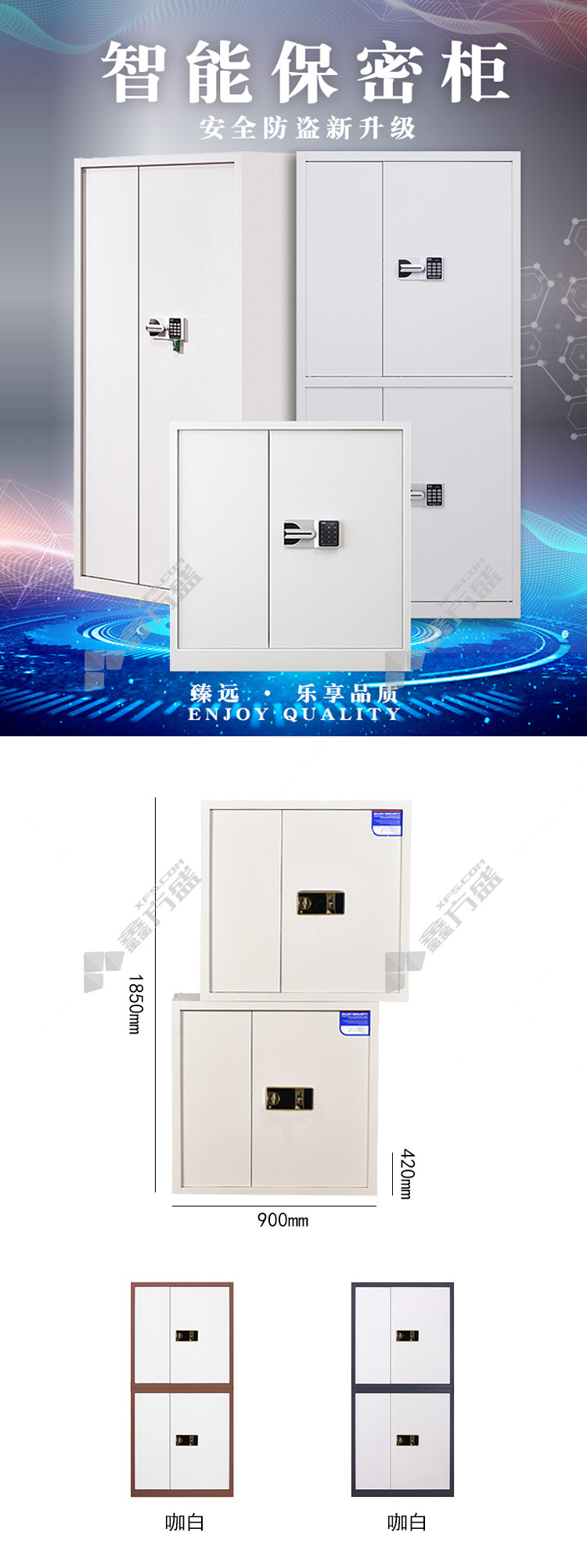 商品名称: 臻远 ZYFSJ-01加厚常规分双节指纹锁保密柜 W900*D420*H1850mm 灰白色