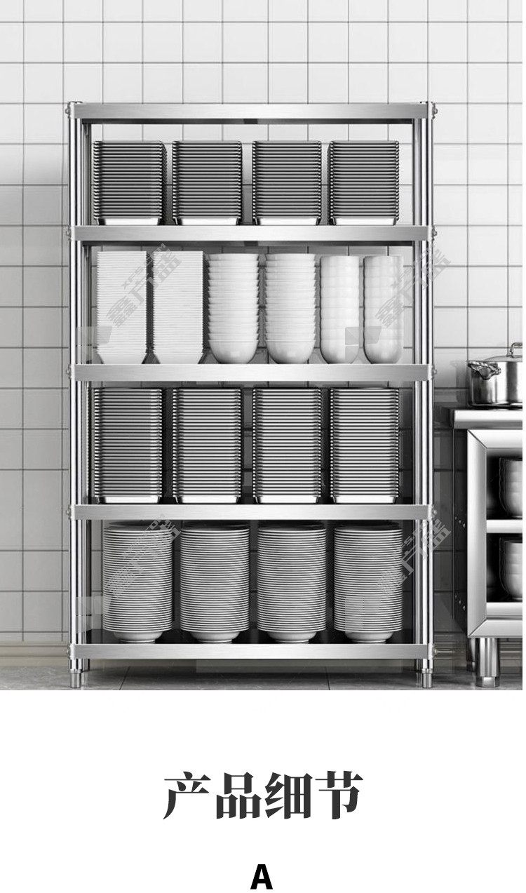 商品名称: 臻远 ZY-ZWJA-03不锈钢置物架 W1200*D350*H1800mm 银灰色