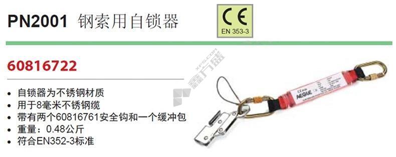 商品规格:60816722,自锁器为不锈钢材质 用于8海米不锈钢缆 带有两个安全钩和一个缓冲包 符合EN353-2标准.