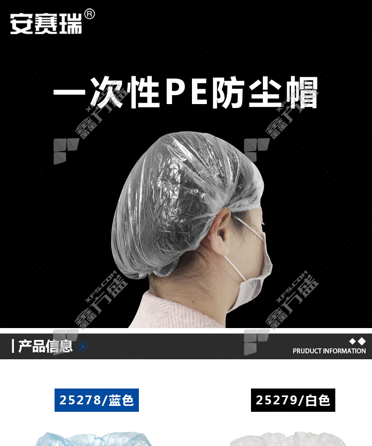 商品名称: 安赛瑞 防水加厚隔离一次性PE防尘帽 25278 均码 蓝色