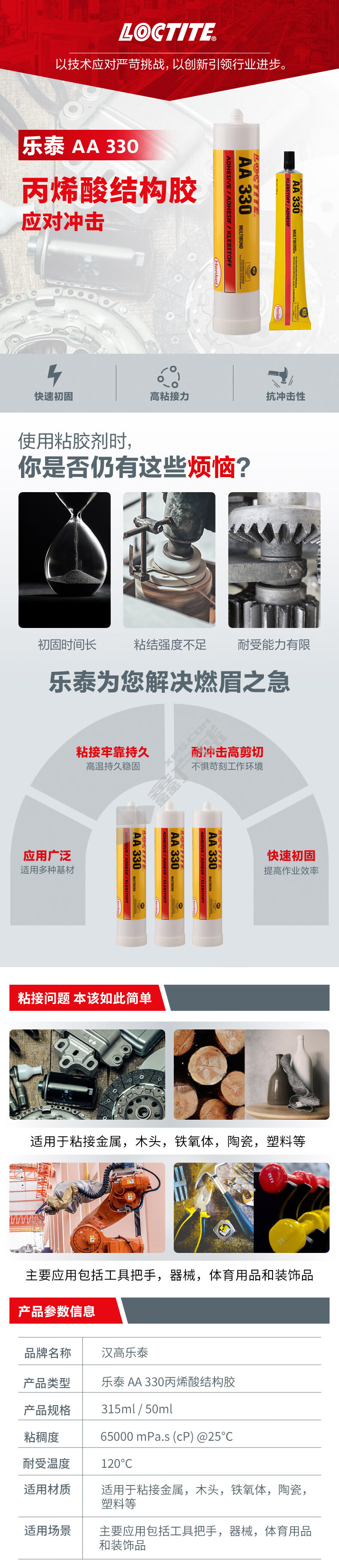 商品规格:Loctite330高粘度型 315ml.
