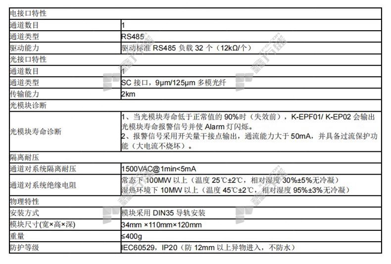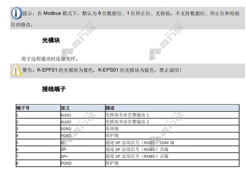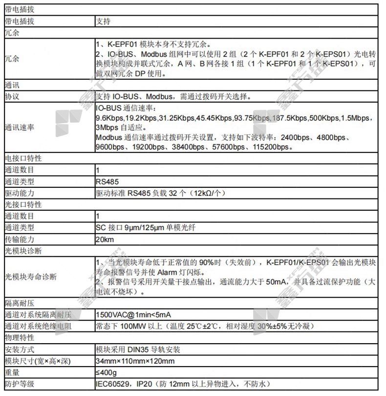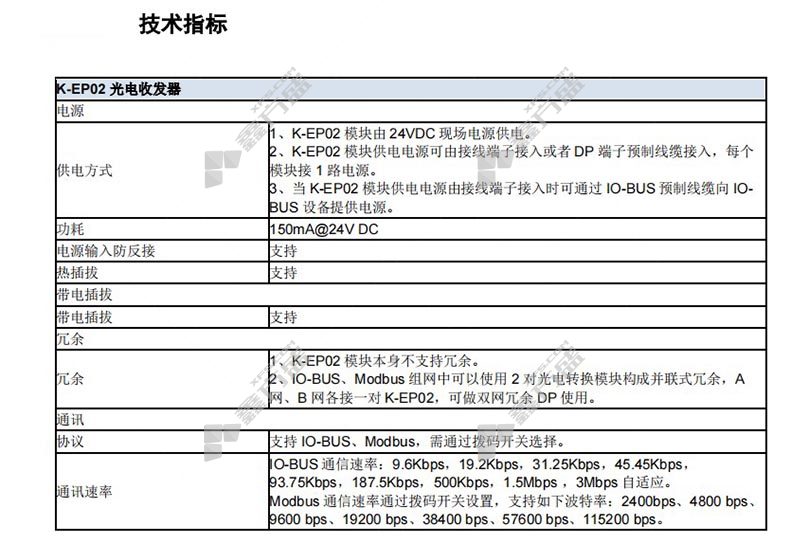 商品名称: 和利时 K系列 Modbus-Profibus总线光电收发器模块 K-EP02