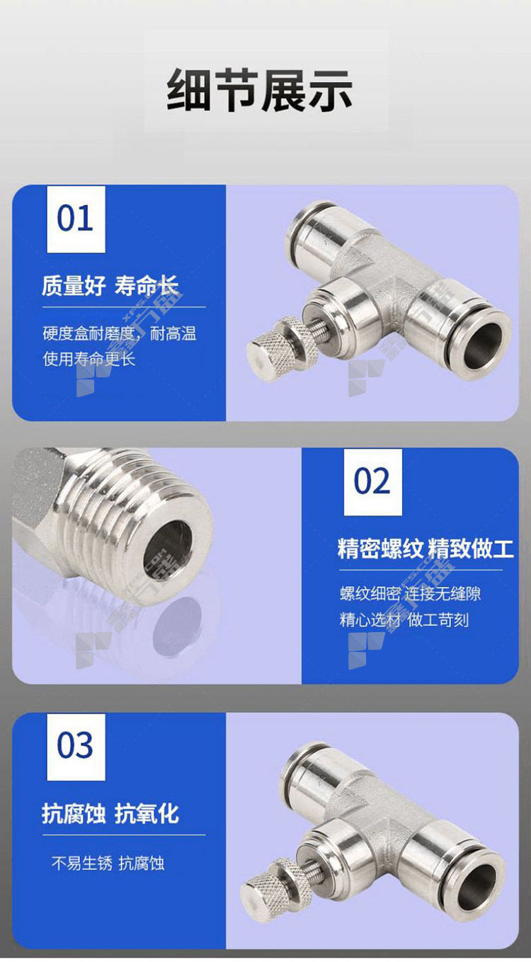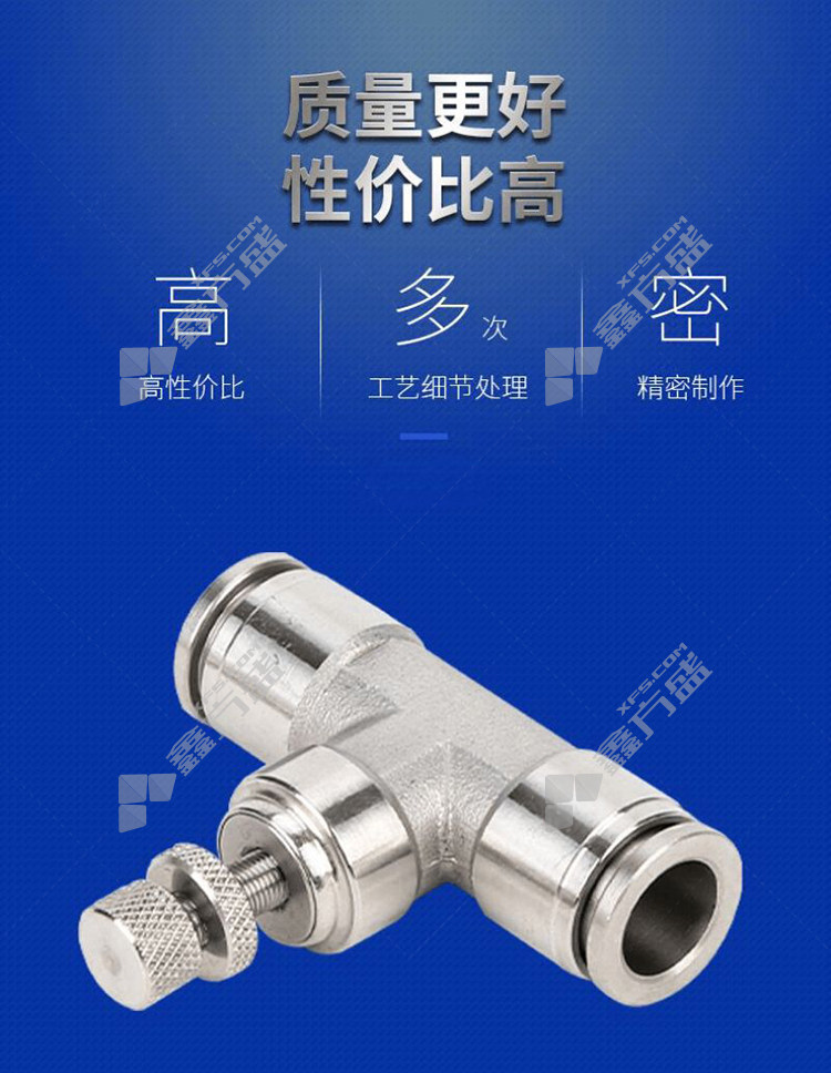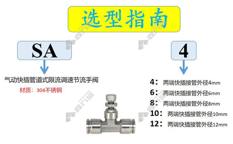 商品名称: 谦华智科 304不锈钢气动快插管道式限流调速节流手阀 SA8 两端快插接管外径8mm