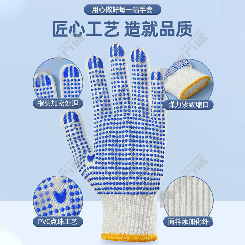 商品名称: 赫力斯 点胶防滑耐磨线手套 10针 650g 白线蓝胶 12副/包