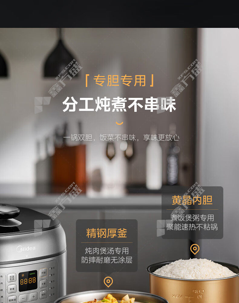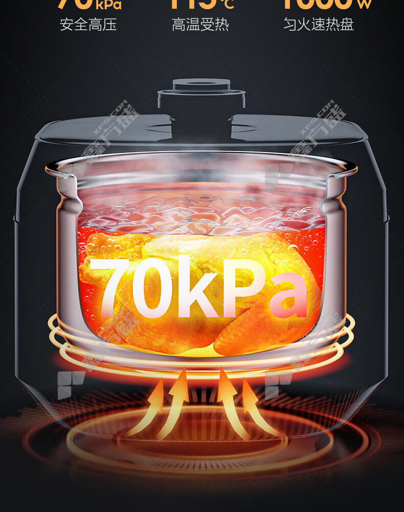 电压力锅内胆材质:精钢厚釜+黄晶内胆