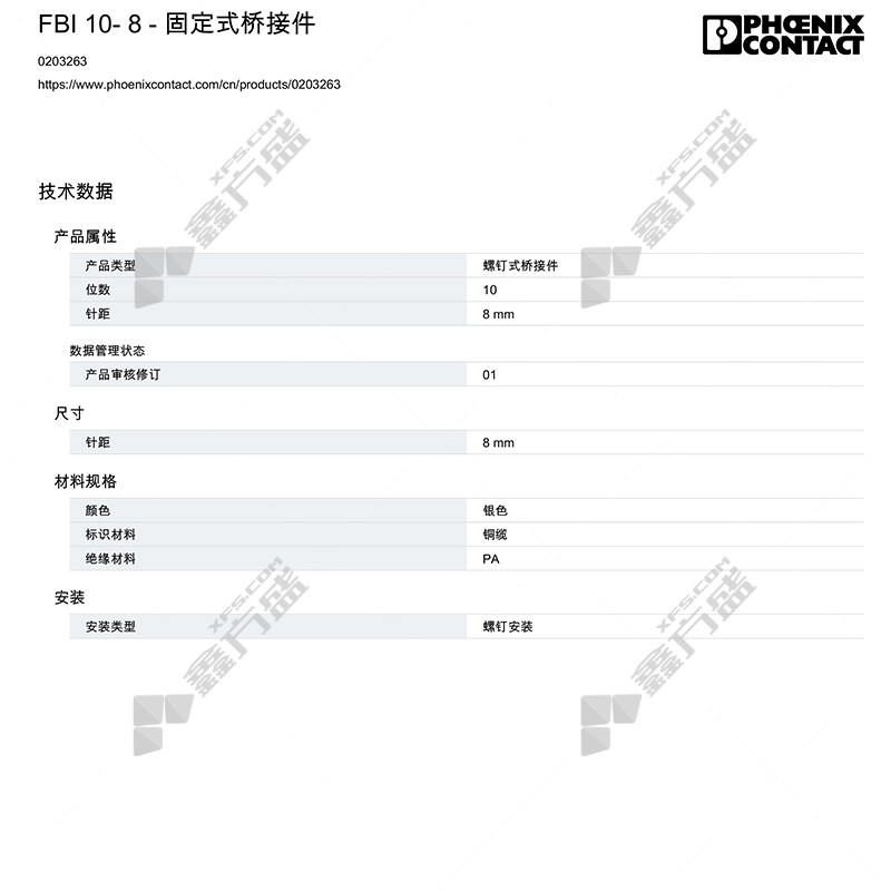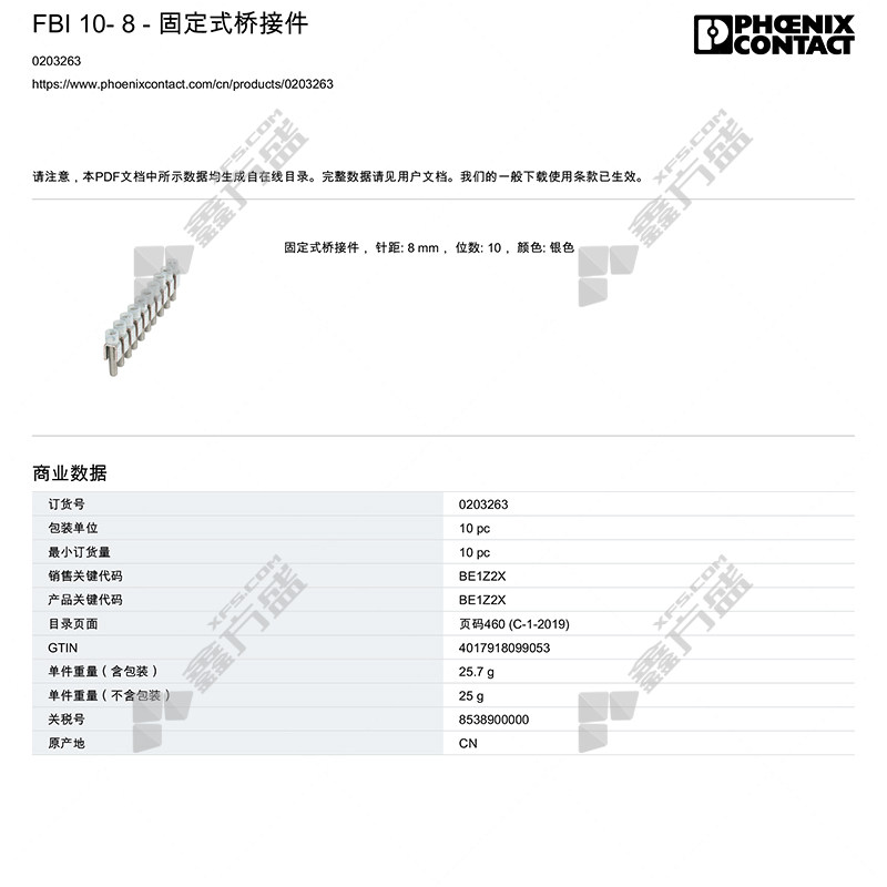商品名称: 菲尼克斯 FBI 固定式桥接件 FBI 10-10