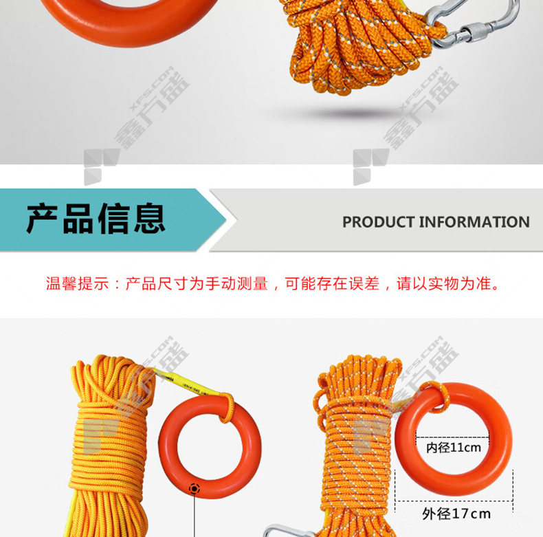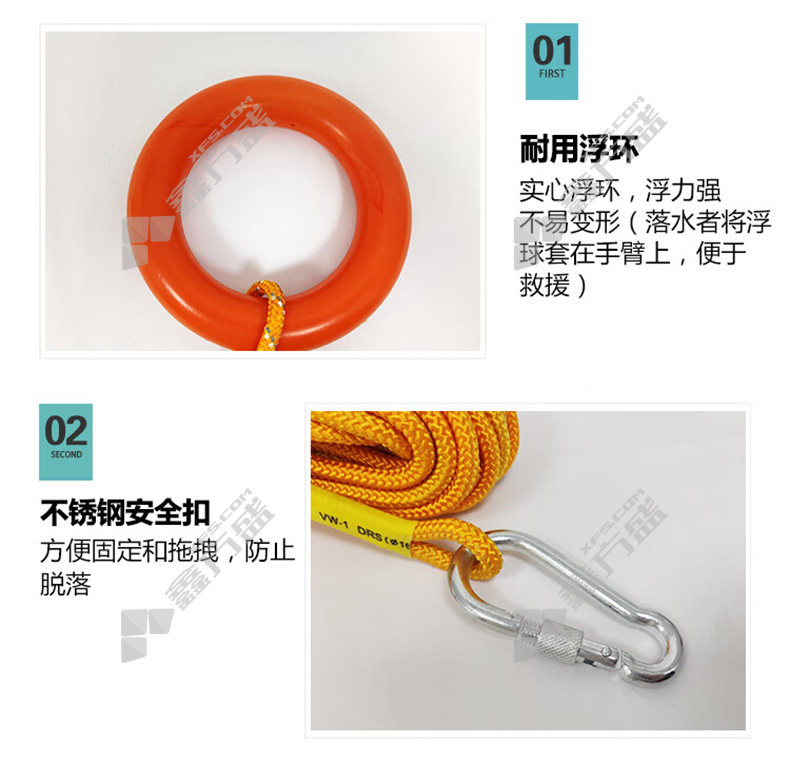 商品名称: 安赛瑞 310108 黄色防汛救援水上漂浮救生绳 直径8mm*长度30m