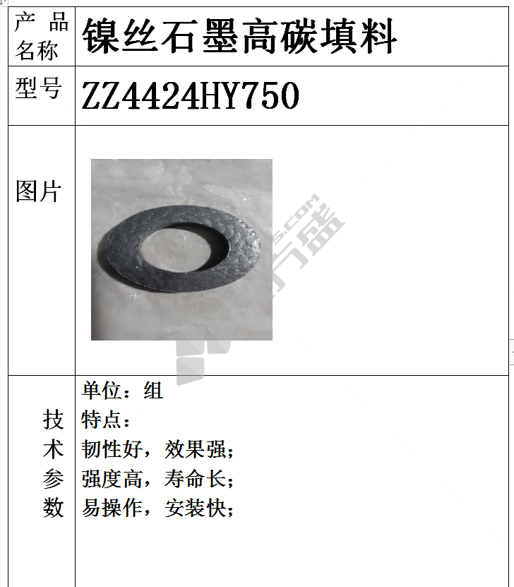 商品名称: 福州核威 镍丝石墨高碳填料. ZZ4424HY750 耐高温750℃,耐高压36.3MPa