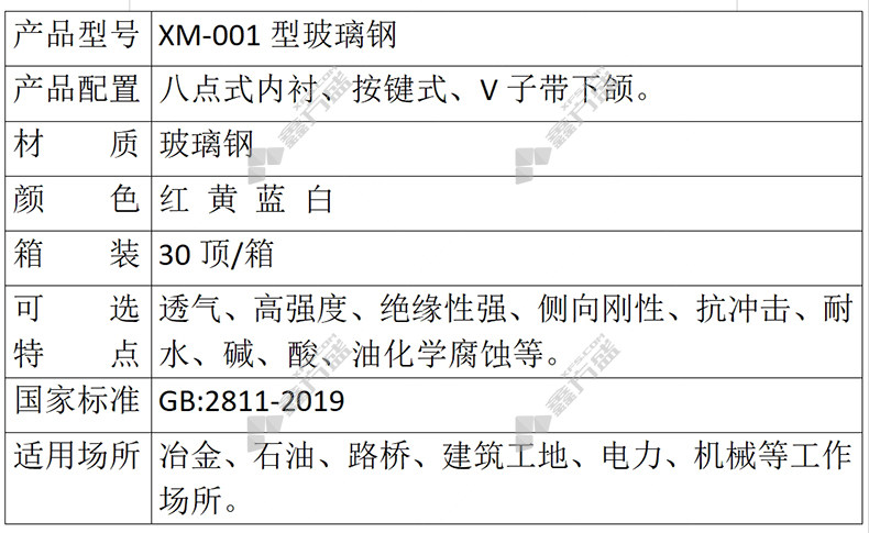 玻璃钢安全帽执行标准:GB:2811-2019