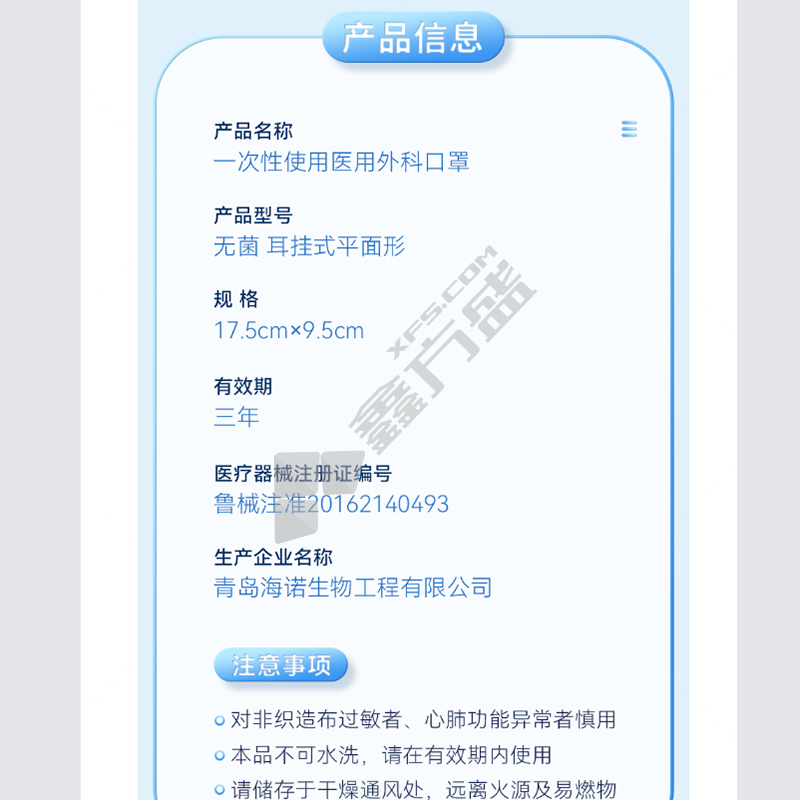 商品名称: 海氏海诺 一次性医用口罩10只独立包装 挂耳式/蓝色
