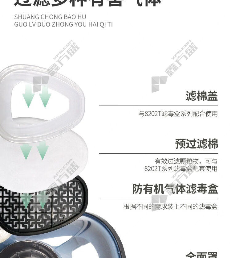 配置: 全面罩+防有机滤毒盒+预过滤棉+预过滤棉盖