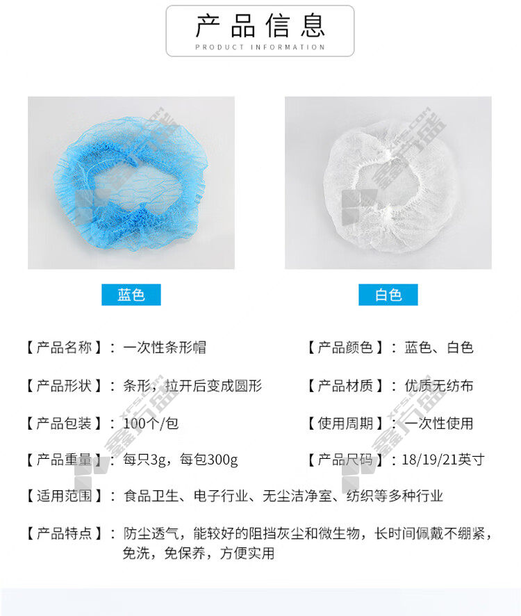 包装清单:一次性无纺布条形帽*100个