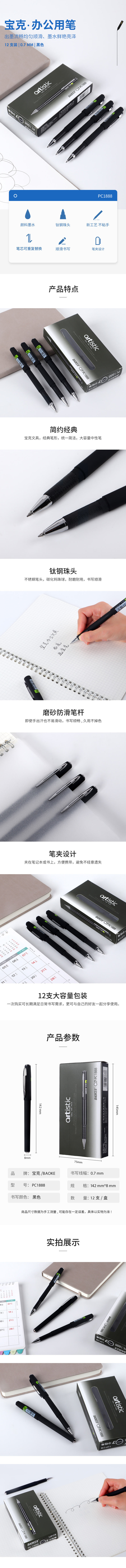 商品名称: 宝克 PC1888 子弹头油墨磨砂笔杆中性笔 黑色 黑色 0.7mm PC1888