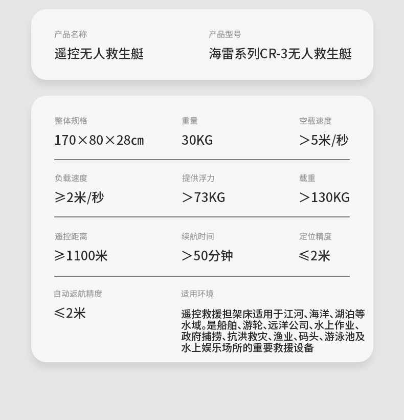 首页 首页 > 雷公王 海雷三号遥控智能无人救生艇 170*80*28cm 海雷三号 HDPE材质