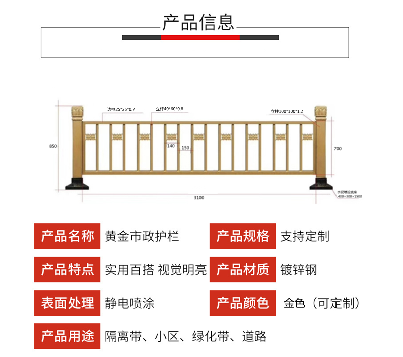 商品名称: 锦安行 金色护栏 85*310cm JCH-GHL03