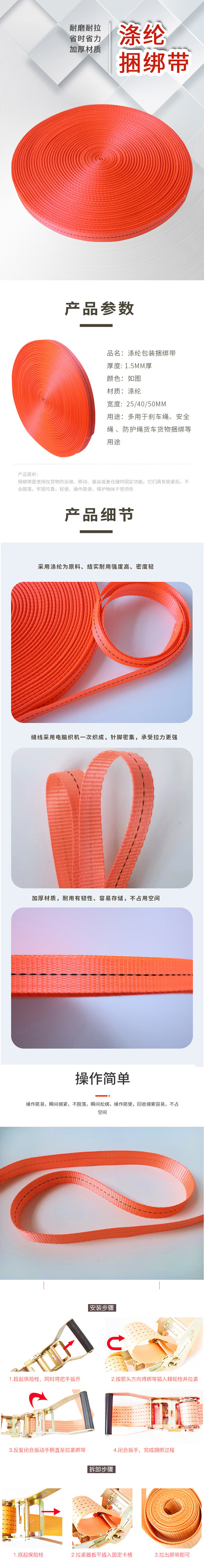 商品名称: 上柯 涤纶运输固定捆扎带 W1457 40mm 橘色
