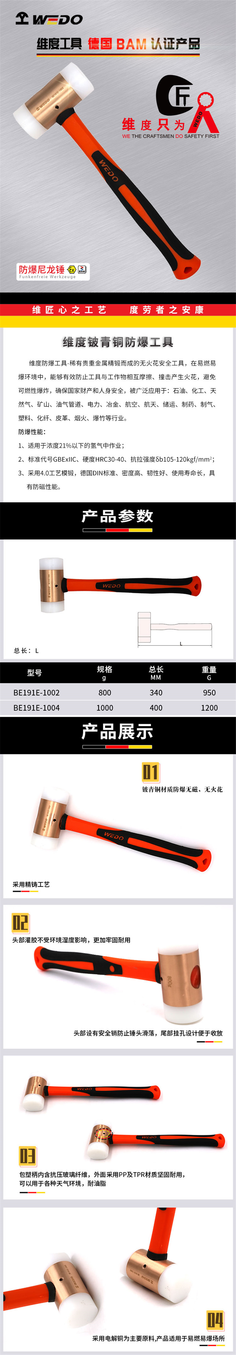 首页 首页 > 维度 铍青铜 防爆尼龙锤 BE191E-1004 1000g 400mm