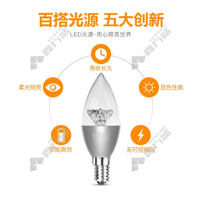 商品名称: 佛山照明 晶亮系列 C37 LED尖泡 5.5W 6500K E14