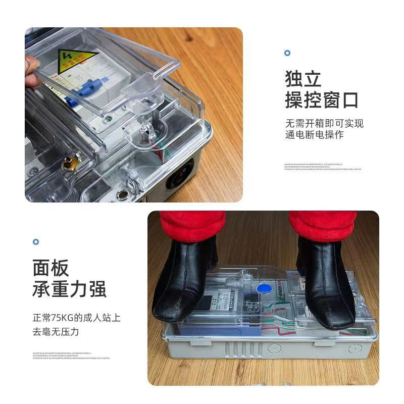 包装清单:电表箱箱体*1个、单相电表*1个、2P空开断路器*1个、小型漏电保护断路器*1个