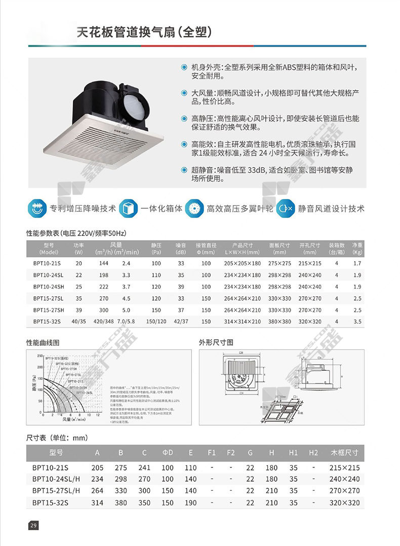 商品名称: 爱美信 全塑天花管道换气扇 BPT10-24SL
