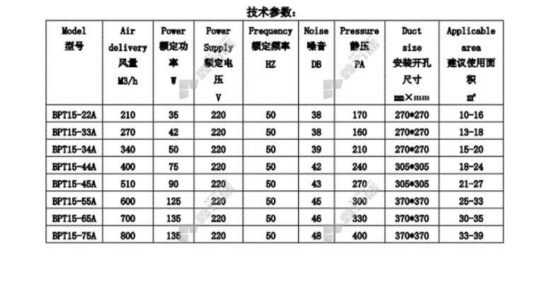 新风机组外形尺寸:长205~264mm 宽205~264mm 高180~210mm