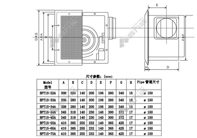 商品名称: 爱美信 标准款 天花板管道换气扇 BPT10-12