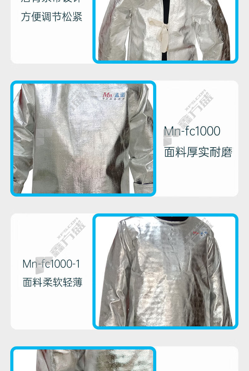 商品名称: MN/孟诺 Mn-fc1000 1000度铝箔隔热半包反穿衣 均码 银色 Mn-fc1000