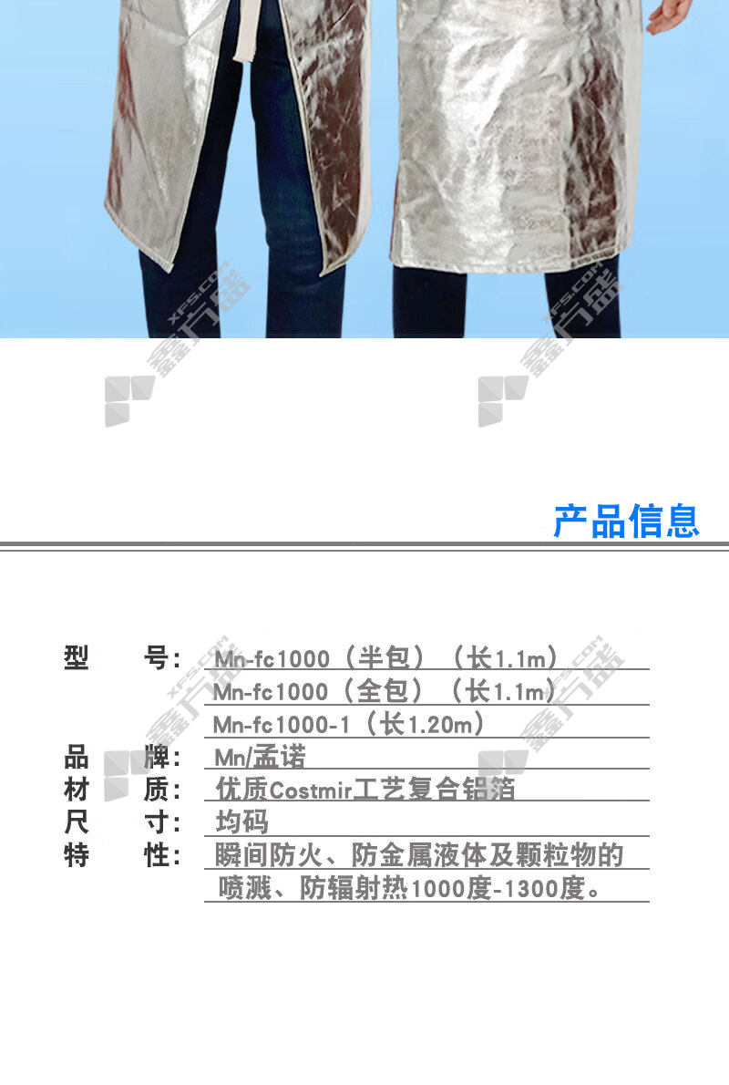 首页 首页 > MN/孟诺 Mn-fc1000 1000度铝箔隔热半包反穿衣 均码 银色 Mn-fc1000