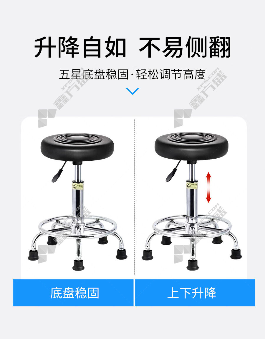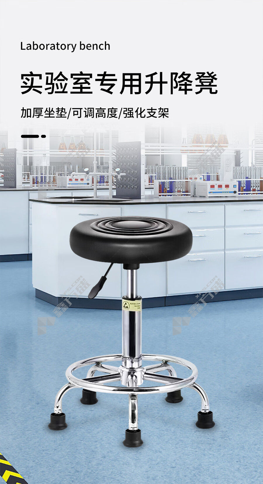 商品名称: 尔迈EM-SYD-01 实验凳黑色升降高度 固定脚 44-59cm